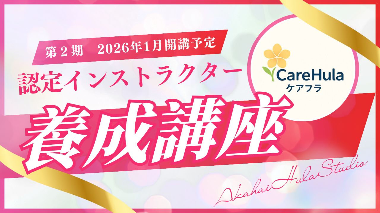 先日、ケアフラ養成講座1期生の2名が無事に修了しました🌈人前でフラを教えるのは初めてだったお二人。毎回の課題を一つひとつ乗り越え、堂々と指導できる姿に心から感動しました。投稿をご覧になった方々から「ケ...