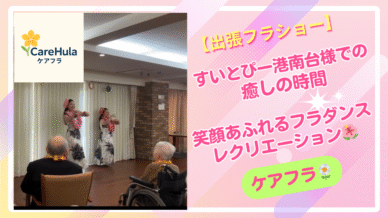 日常 【出張フラショー実施レポート】すいとぴー港南台様でのあたたかな時間|高齢者施設向けフラダンスレクリエーション すいとぴー様で開催した出張フラダンスショーの様子をご紹介。アットホームな空気の中、入居者様と心通う癒しのひとときとなりました。 2025.09.21 日常